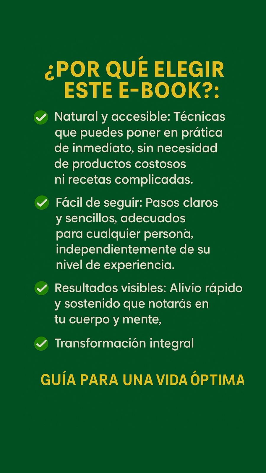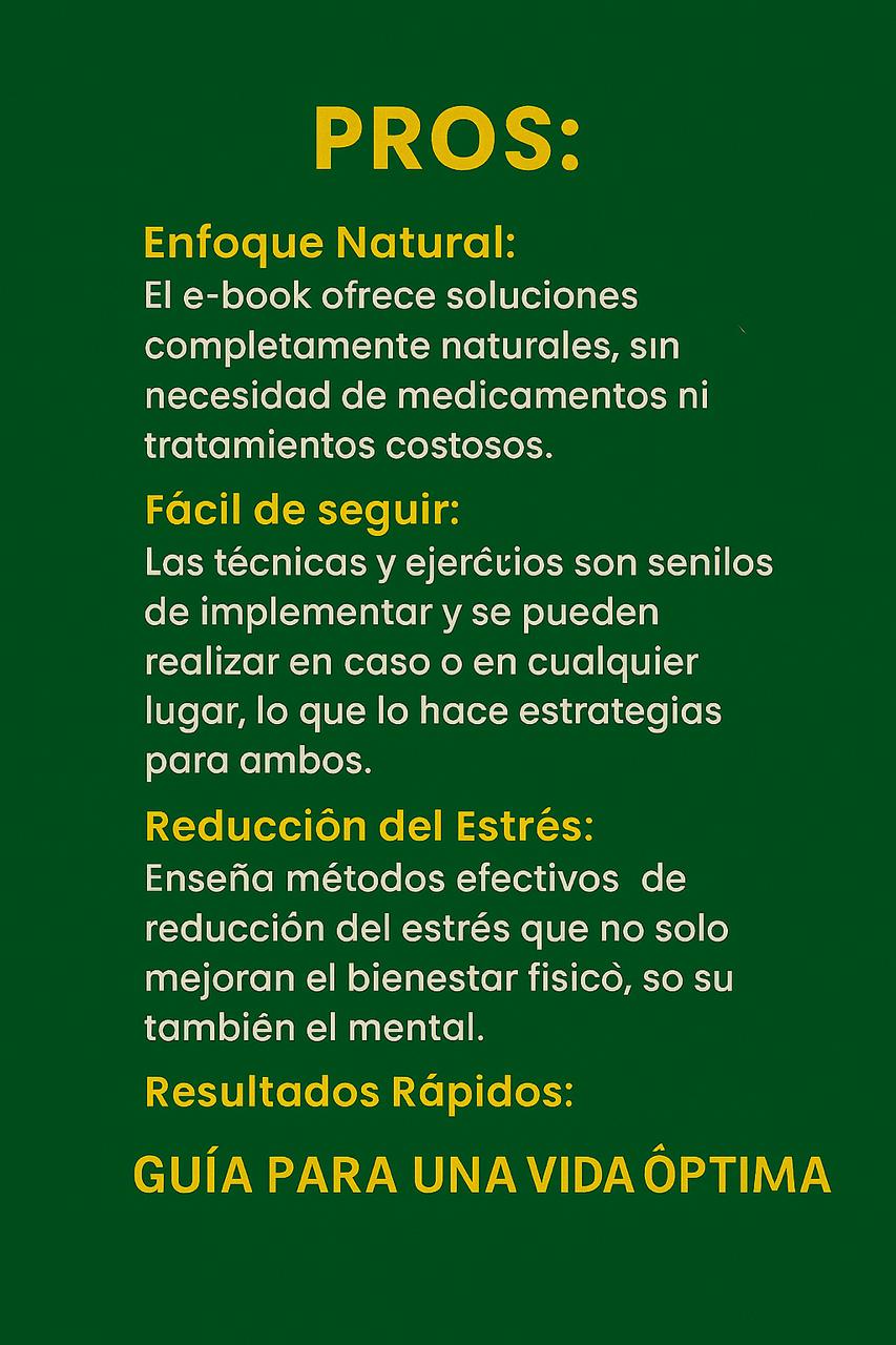 Incluye un e-book completo dividido en módulos prácticos, con teoría, ejercicios, checklists y rutinas diseñadas para transformar tu bienestar físico y mental de manera natural.